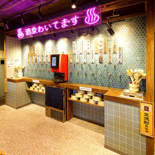 店内に用意された大量の「蛇口」からはなんとも豊富なお酒の数々が注がれます!ただ飲んで食べるだけの居酒屋とはひと味もふた味も違う、お客様が楽しんでご飲食頂けるようなエンターテイメント性の溢れたサービスの数々をご用意しております。当店はお客様に「初めての体験」をご提供いたします♪